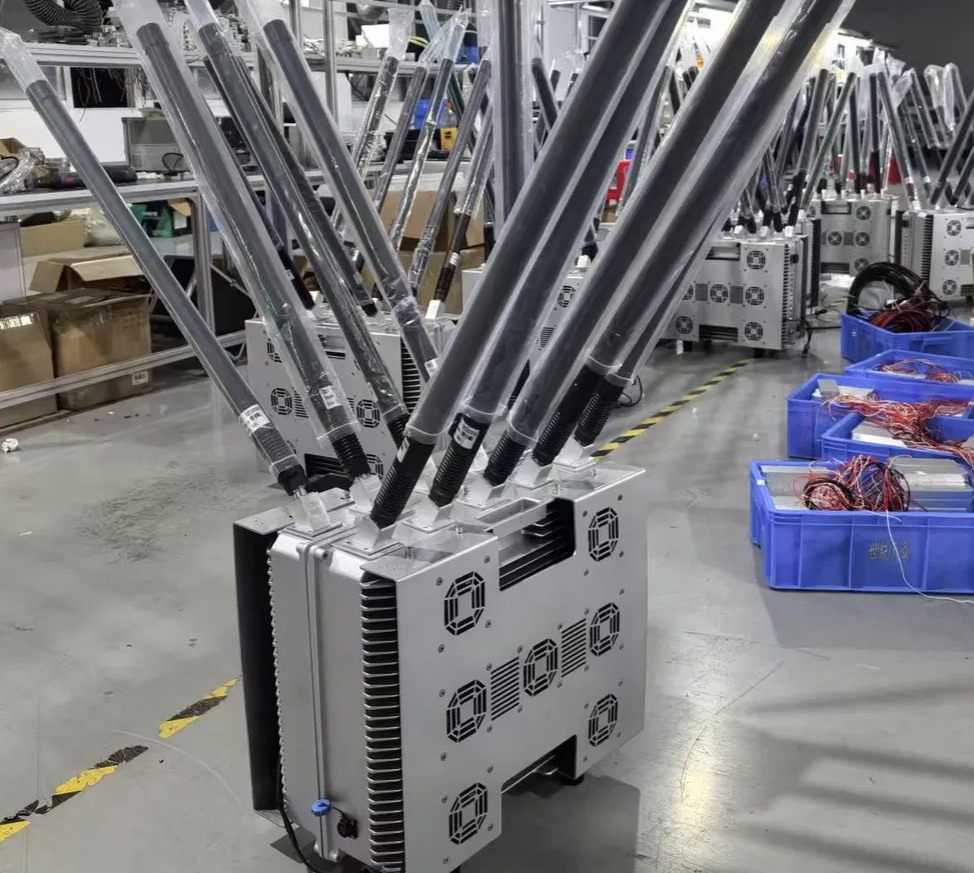| 多频打击 | 没有外部单元,高度集成的综合设计,具有常规使用的2.4GHz、5.8GHz等遥控地图传输带无人机的打击功能,并具有干扰GPS的能力(可扩展其他频段)。 |